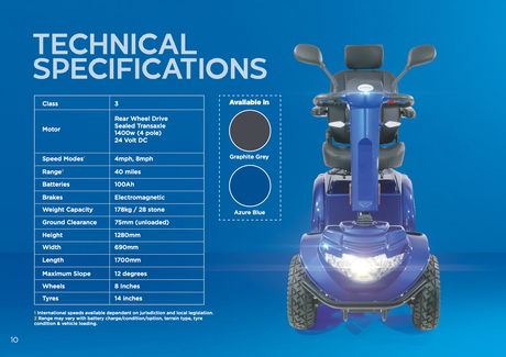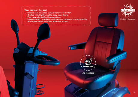 They also feature various adjustable components including armrests, headrests, legrests and swivel seating, making it as easy as possible to get in and out of the scooter.