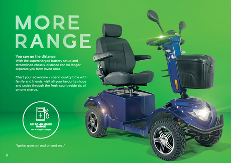 They support up to 35 stone and are designed with robust frames, integrated suspension, and powerful motors lasting a high mile range. What's more is with adjustable armrests, large luxury seating and puncture-proof pneumatic tyres, your journeys will be as comfortable as possible.