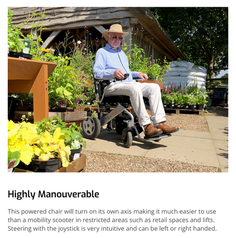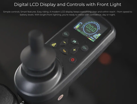 The joystick makes manoeuvrability easy, allowing users to navigate surroundings with minimal physical effort required. This is incredibly helpful for individuals with limited mobility and upper body strength or control who may otherwise need additional support.