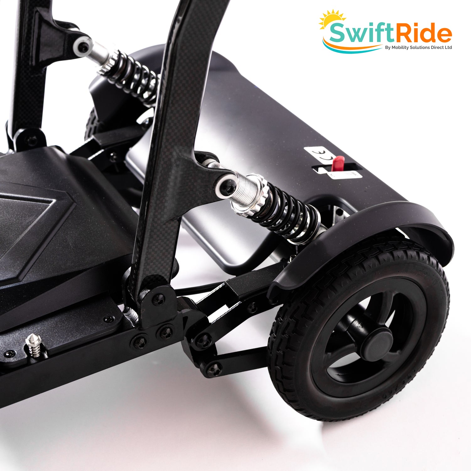Compact and easy to manoeuvre, the SwiftRide Carbon Lite is our lightest carbon fibre folding scooter. This rear-wheel-drive mobility scooter folds down in seconds, making it ideal for everyday use, tight spaces, and travel. Built-in Near Field Communication (NFC) adds an extra layer of security and ease of use. With a 19-stone user weight limit, padded seat, and adjustable armrests, the SwiftRide Carbon Lite offers both comfort and practicality wherever you go.